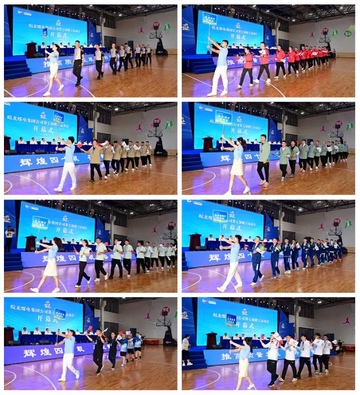 “钱营孜矿队加油!”“朱集西矿加油!”现场观众的助威声此起彼伏,他们为各自支持的队伍呐喊助威,将整个开幕式的气氛推向了最高潮。