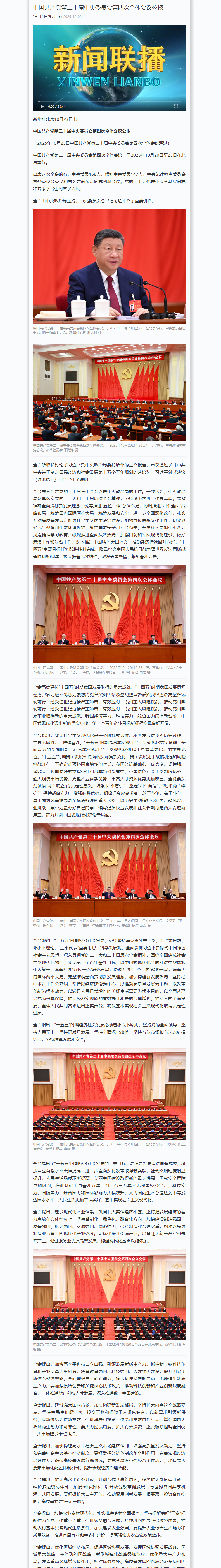 中国共产党第二十届中央委员会第四次全体会议公报